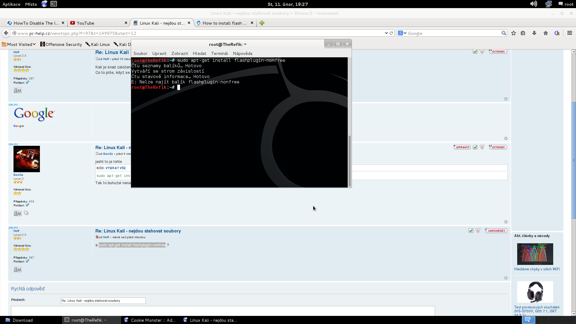 Tak teď jsem udělal neskutečnej objev :D Zjistil jsem, že když jsem na internetu přes adresu freewebproxy.us Tak funguje youtube aji můžu stahovat.. Jenom, nešlo by to nějak zakomplexovat do browseru Iceweasel?