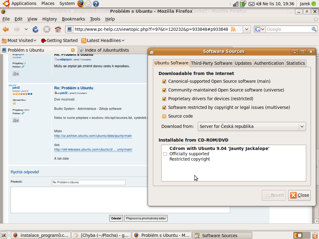 Selhalo stažení http://cz.archive.ubuntu.com/ubuntu/dis ... ce/Sources 404 Not Found