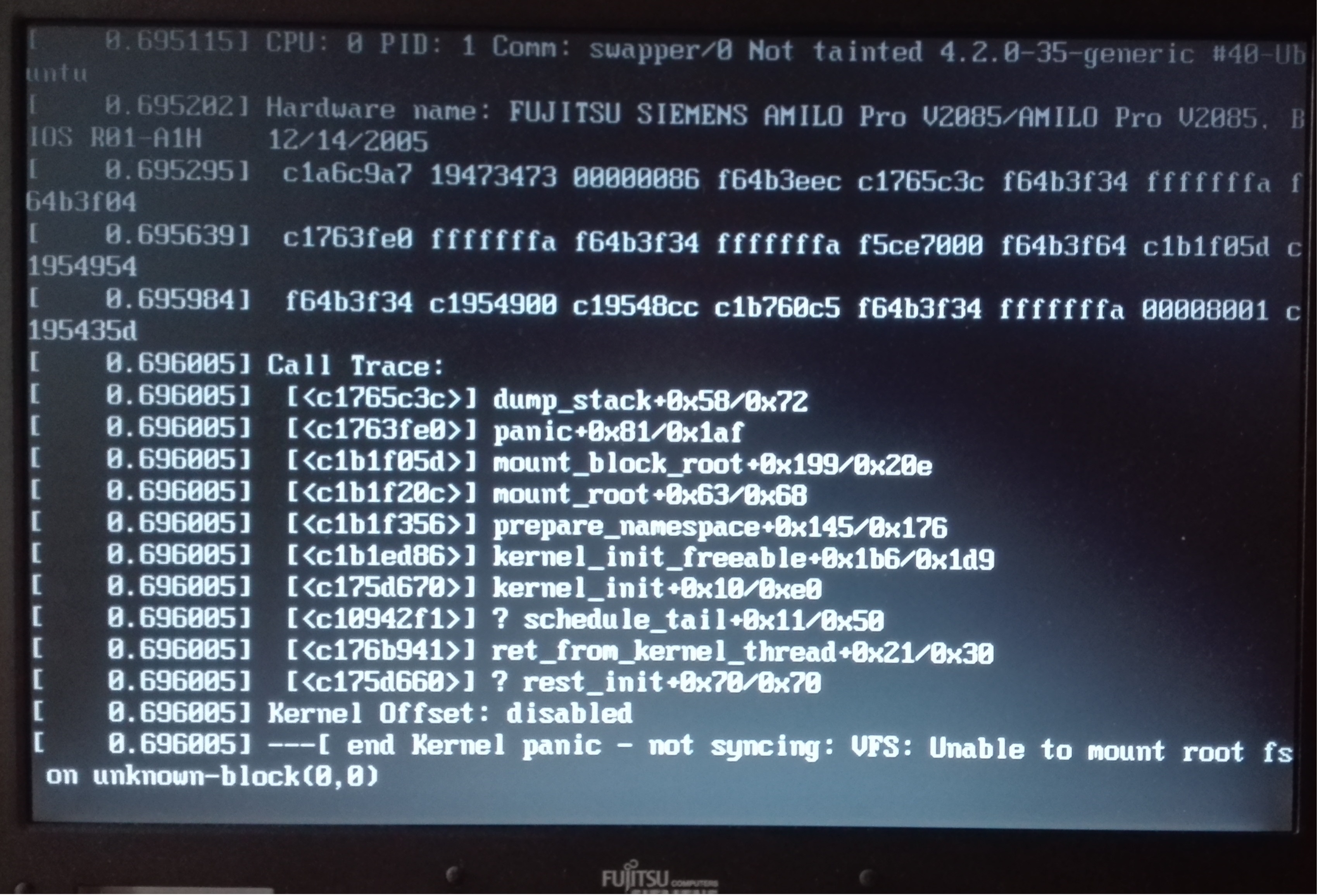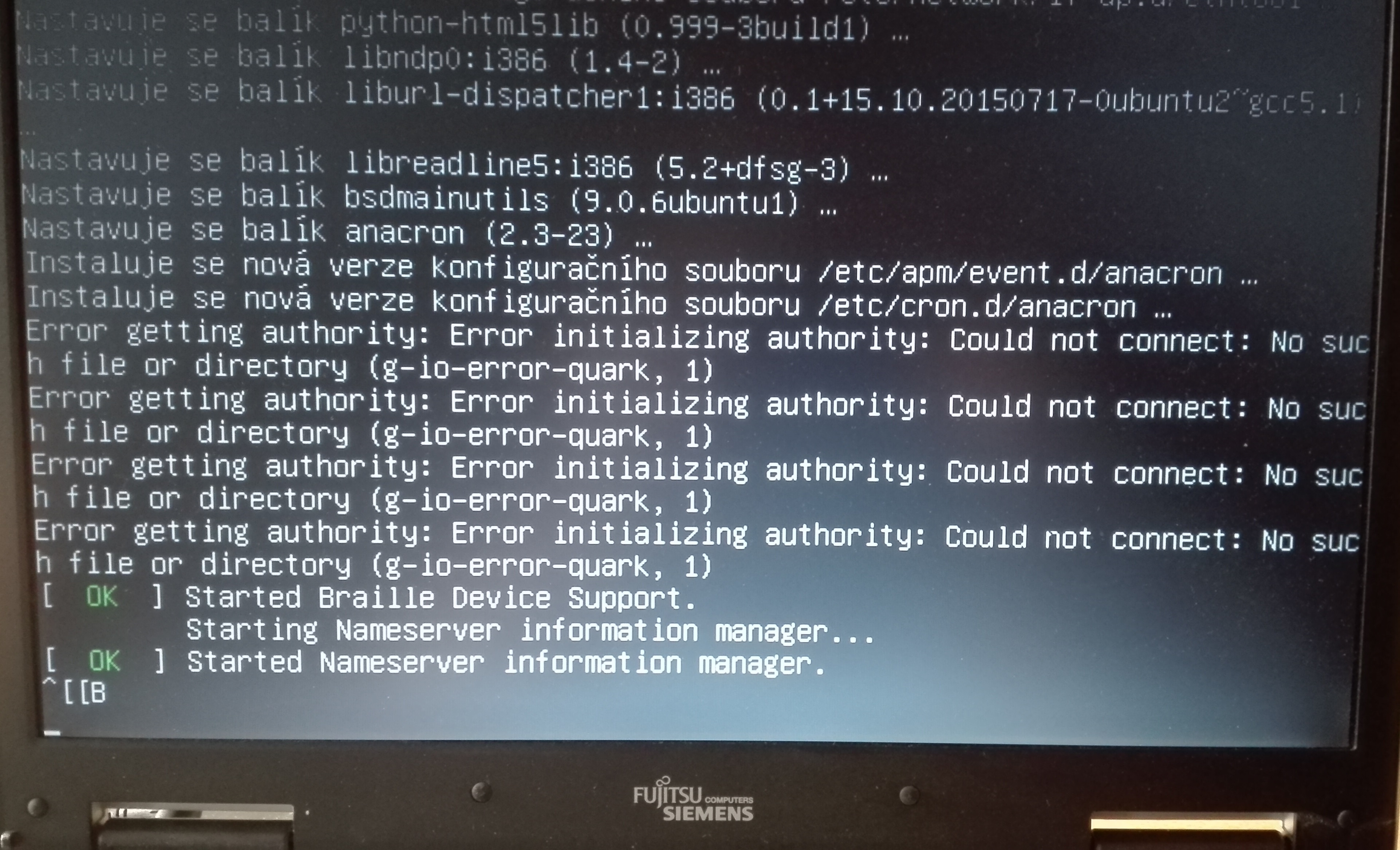 donesl jsme si po delší době starý noťas abych mohl zkusit co funguje na Linuxu. Byl tam Xubuntu 14.04 a po spuštění mi byla nabídnuta verze 15.10, tak jsme dal instalovat. Instalace zdá se probíhala OK, až do doby, než se notebook restartoval, to skončilo následující hláškou a následným vypnutím notebooku: Tak jsme zkusil obnovu, 4.2 verze skončila stejnou hláškou jako minulý pokus o čisté spuštění, jelikož výběr "recovery verzí" je celkem velký, zkusil jsme dle návodu na http://wiki.ubuntu.cz starší verzi Ta se spustila, a snad i něco proběhlo, ale teď zůstala viset obrazovka: A nějak nevím co dál, jestli noťas natvrdo vypnout, nebo co s tím... Samozřejmě bych OS rád opravil