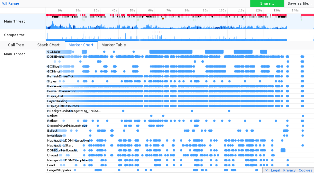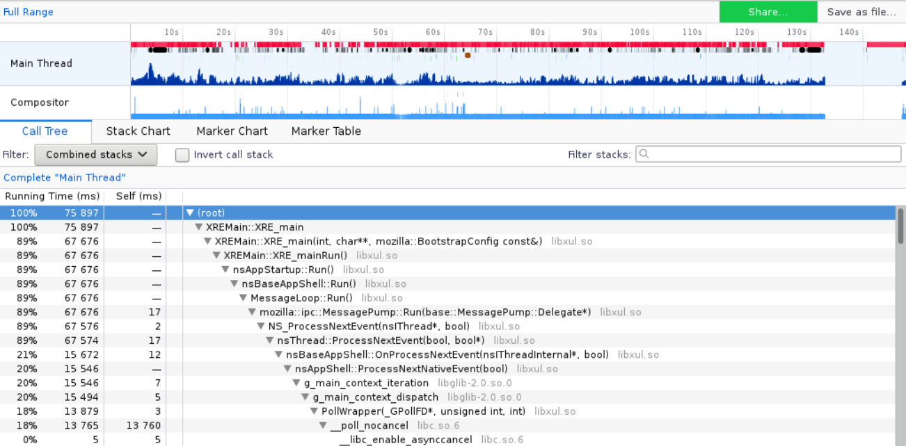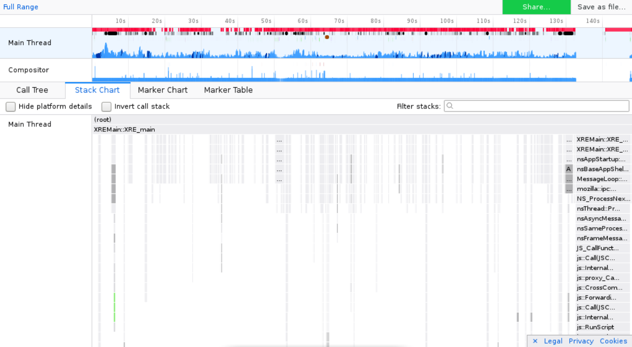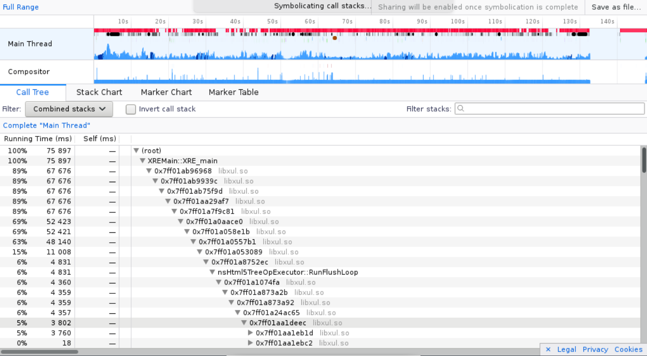Blokátory javascriptu, taktéž bez nějakého valného výsledku, javascript za to nemůže, veškerý čas CPU využívají knihovny psané v céčku přímo vývojáři Firefoxu (pokud se nepletu), viz výstup z Gecko profileru.
