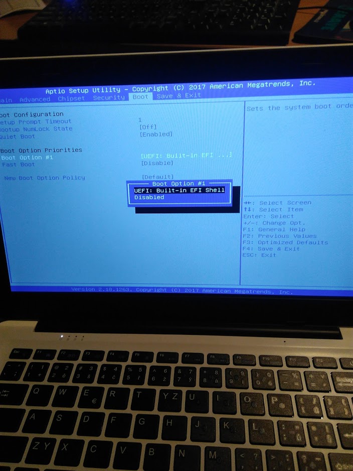 Přikládám ten BIOS. Není tam klasická BOOT nabídka jak jsem byl zvyklý ze stolního počítače (i toho nového s UEFI), kde je vždy na výběr mezi CDROM, HDD, USB apod. Tady se jen fleška jen někdy v bootovací nabídce nabídce objeví, i když připojená je vždy.