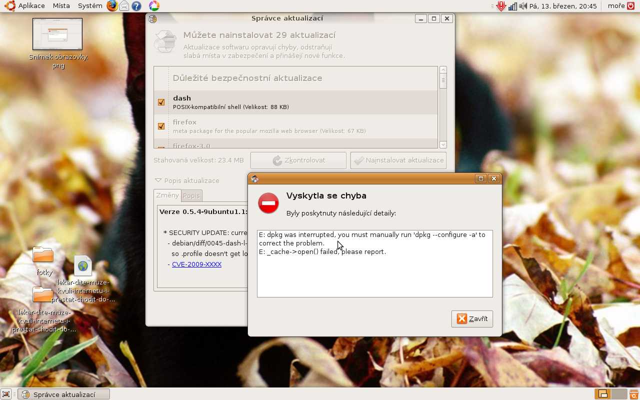 Zdravim,mám na Ubuntu problém s aktualizacemi a instalaci balíků,napíše tp vždy tuhle chybu...