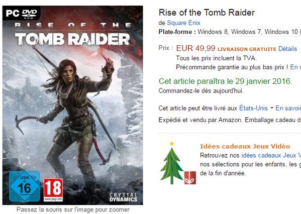 Podle francouzského Amazonu se hry dočkáme již 29. ledna 2016 ! Tato zpráva mě osobně moc potěšila, protože se na novou Laru těším. Další zajímavou informací je podpora i Windows 7 a 8, takže to vypadá, že hra nebude fungovat jen na Windows 10 jak bylo předtím oznámeno. Uvidíme, jak to dopadne.
