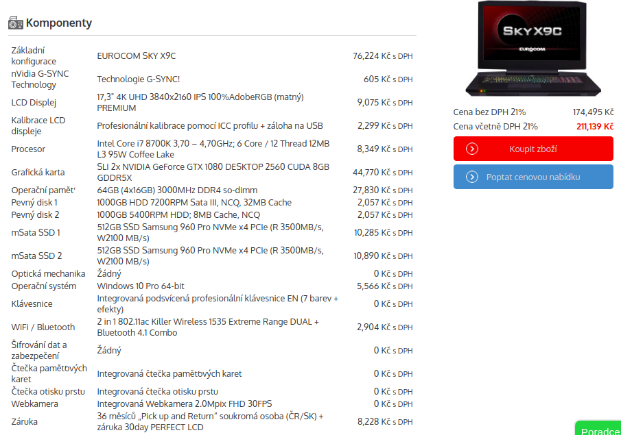 Toto už je nekompromisní herní notebook, však cena přes 210tis je pro většinu uživatelů "z říše snů" a v této ceně se většinou kupuje auto, né notebook, ale je to pěkná ukázka toho, kam až se může cena přenosného zařízení vyšplhat..