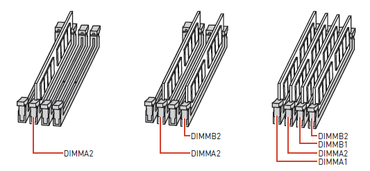 sloty sou zleva doprava 1234 .. v biosu sw desky je to jako B1B2A1A2 .. B1B2 mi jely v pohode, ale jakmile se pridalo neco na A1 tak nenabehl uz monitor, jakmile jsem pridal A1 i A2 (pridal nebo nechal jen) tak take nenabehl monitor (plus se to samo restartovalo), bohuzel potrebuju vyuzit vsechny sloty. Ramky se kterymi jsem testoval mi na jine desce bezi bez problemu (zkousel jsem vice ruznych RAM modulu), chyba je 100% na (nove zakoupene) desce tedy.