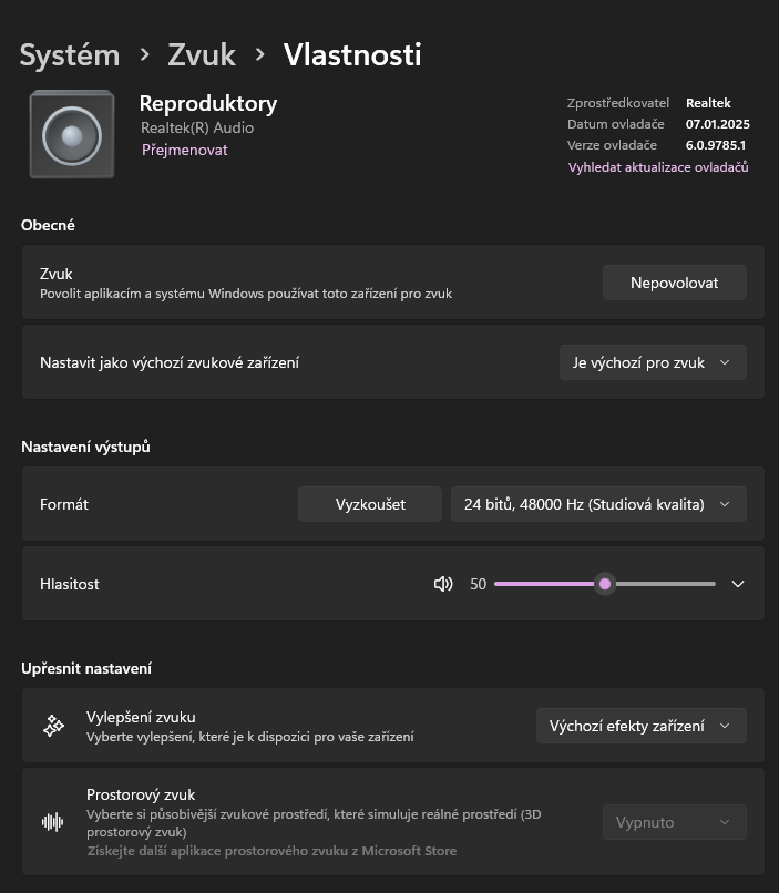 Re: Nekvalitní zvuk po reinstalaci Win 11
