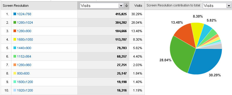 TOP 10 nejpoužívanějších rozlišení Další zajímavé údaje za rok 2008: Pro vysvětlení: Visits = celkový počet všech návštěv, Pages/Visit= průměrný poč. zobrazených stran na 1 návštěvu, Avg. Time on Site= průměrný čas strávený na fóru, % New Visits= % nových návštěv, Bounce Rate= % tzv. bleskových návštěv (při kterých byla zobrazena pouze 1 stránka)