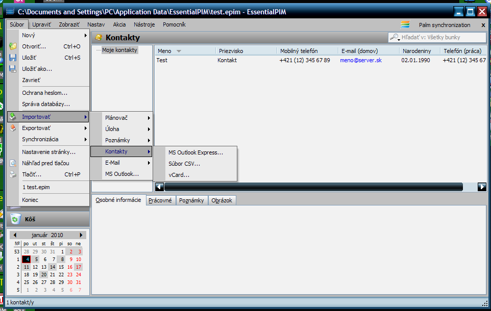 Výkonný nástroj sloužící jako osobní plánovač, organizér schůzek a úkolů atd. Samozřejmostí je také přehledná správa kontaktů. Všechny záznamy lze přehledně třídit a také barevně odlišit. Program rovněž umožňuje obousměrnou synchronizaci záznamů a kontaktů s MS Outlook. Export záznamů je možný do formátů HTML, RTF, CSV nebo TXT.