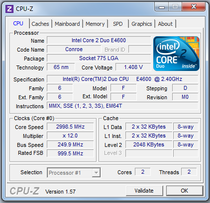 Trošku to tu zase oživím, procesor mi běžel od začátku prázdnin na 2.88Ghz, a rozhodl jsem se to ještě trochu popohnat. Teď mám FSB 250, no s 260 to už nenaběhlo (po bootu hned BSOD), tak jsem to nechal takhle. Zde je obrázek z CPU-Z, napětí mám na auto, ale běží to stabilně a to je hlavní. Taky je zajímavost, že na tom 2.88 jsem měl v idle cca 40°C a v zátěži cca 60-62°C, tady mám v idle pod 35 a v zátěži tak nějak stejně. Budu kupovat C2Q ale bůhví kdy, takhle je to taky o něco lepší.