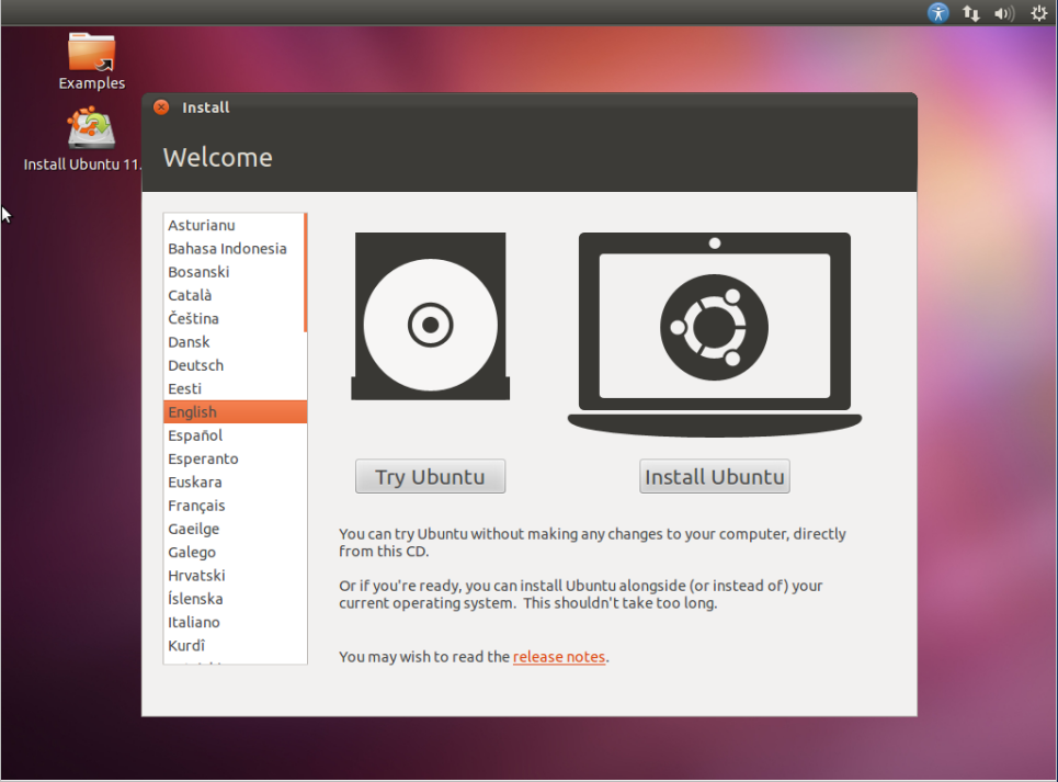 Ubuntu si můžete před instalací vyzkoušet, což je velice dobrá věc. Pokud nemáte s Linuxem zkušenosti, můžete si ho spustit z tzv. LiveCD, které jsme si vypálili. Pokud vyberete tuto možnost, můžete se Linuxem hrát jak chcete a nedotkne se vašich dat. Ovšem my chceme Ubuntu nainstalovat, takže klikneme na Nainstalovat Ubuntu