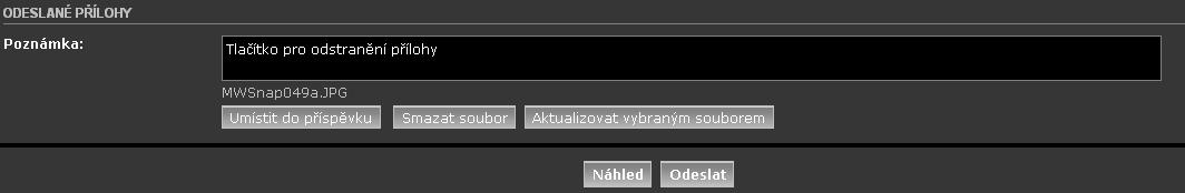 Po té co je soubor přiložen nebo chcete-li po té co se soubor ukáže v "Odeslané přílohy" je možné pokud píši nějaký návod vložit obrázek přílohy do textu tak aby korespondoval s textem a neukazoval se až za textem jako příloha.