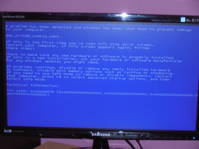 Ahoj, včera nám začal pc zničehonic zlobit (nic jsme neinstalovali nového atd.), asi 5x jsme měli Blue screen, ale než jsme stihli něco pořešit, máme tam teď toto a pc už vůbec nenajede :( Máme Windows Vista. Nejsme žádní pc odborníci, tak snad to dáme nějak dohromady... díky za rady