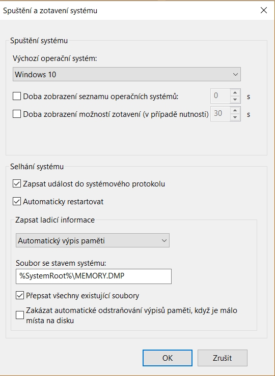 Ahoj, díky za reakci. Nastavení minidumpů je dole na obrázku, mám to změnit jen na ten zkrácený výpis? A možná trochu blbá otázka, ale jak zjistím zda je update BIOSu k dispozici? Našel jsem jen verzi a datum BIOSuadavyp píše:Ahoj. Máš správně nastavenou tvorbu minidumpů?