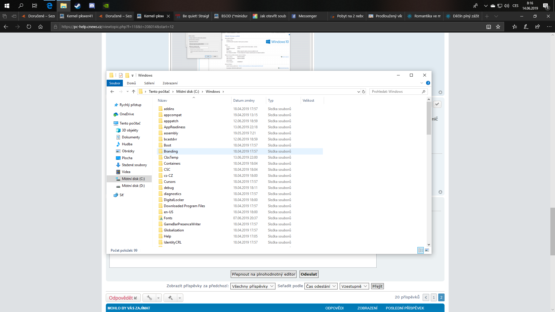 Sekce pro řešení potíží s BSOD (tedy pády Windows do tzv. modré smrti)