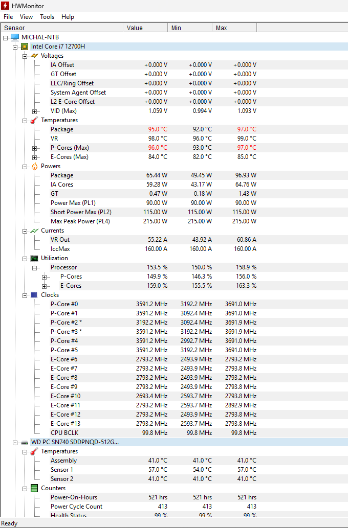 Ještě to však vyzkoušej při menší zátěži. Ten CPU má TDP 45W. Takže to vypadá, že to jelo na plný výkon. Při plném výkonu jsou teploty vždy vysoké, ale BSOD je však vždy chyba. Jde o to, aby ti neřekli, že ntb nemá správný přívod vzduchu, a proto to nemůže uchladit. Ideálně, když jim pošleš fotky kde je ntb umístěný, když se to přehřívá.