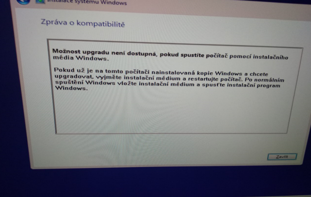 takže když jsem stáhnul iso vytvořil jsem bootováci usb flash disk ale možnost upgradu nejde po nabootování z flash disku tak jsem zkusil spustit instalaci z windowsu ale vyhodilo to error viz screen.Jediná možnost asi bude čistá instalace co si o tom myslíte?