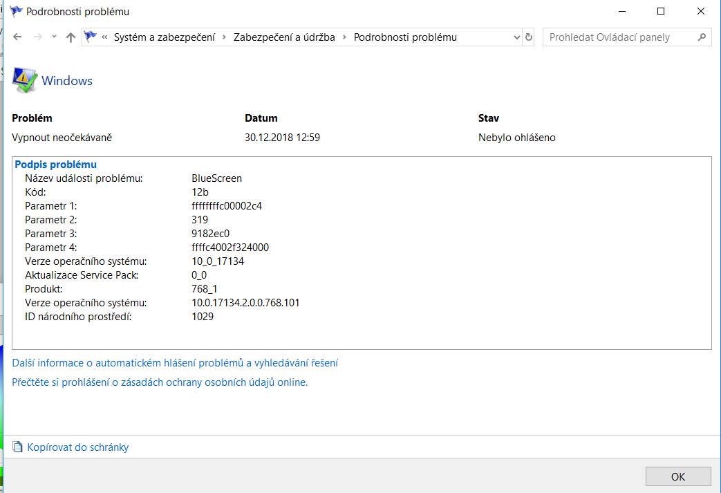 Re: Několikrát za měsíc modrá obrazovka a následný restart