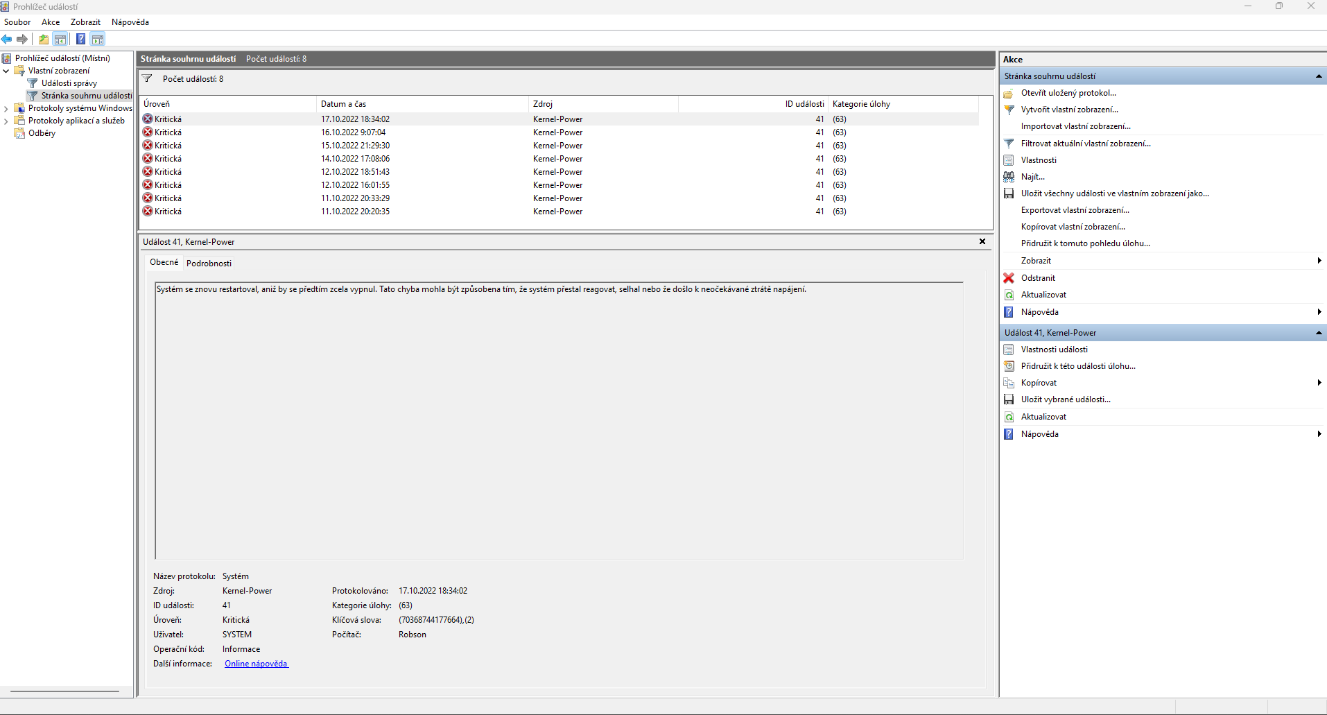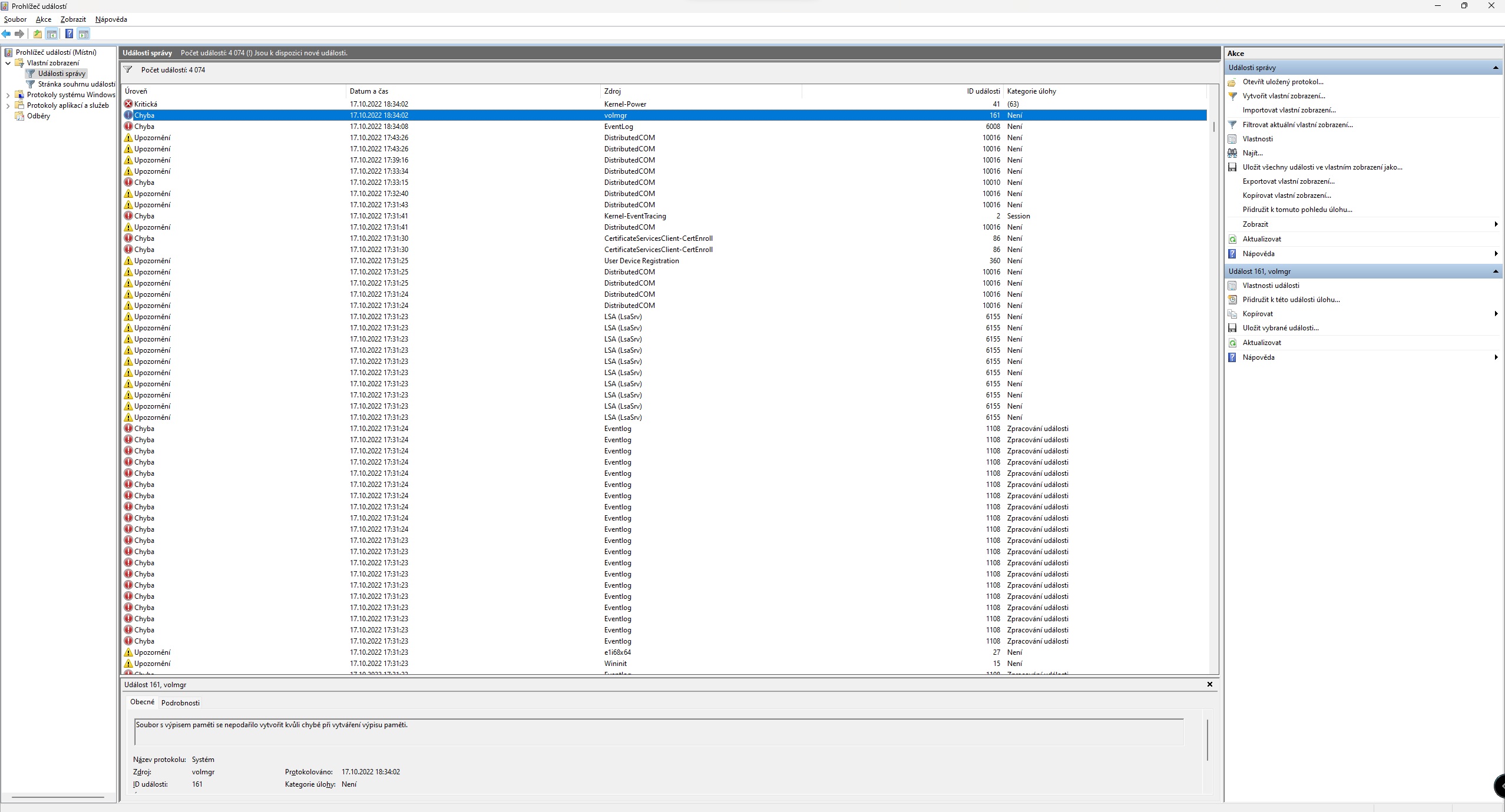 V eventlogu se musíš pořádně podívat, co se dělo předtím, než došlo k chybě. Podobně u nehody tě zajímá především, co se dělo před tím, než se stala.