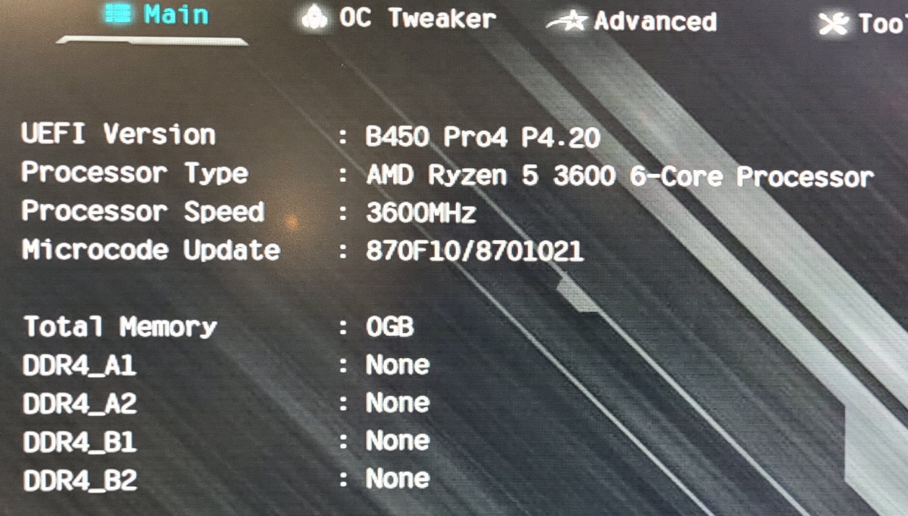Bohužel nemám možnost vyzkoušet CPU v jiné MB. Foto s BIOSu, kde nejsou načteny RAM je vyfoceno, po pádu, kdy se BIOS sám od sebe spustil. Pokud se do BIOSu podívám, jsou obsazeny oba sloty A2 + B2.