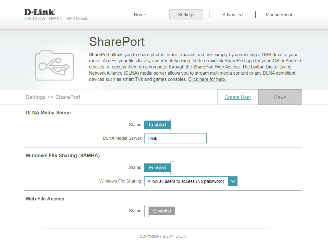 DLNA na D-Link DIR-818LW B1
