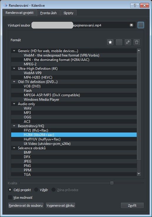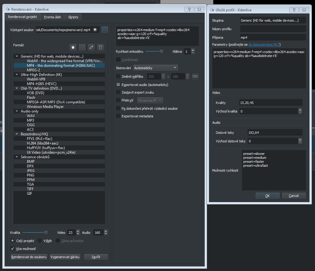 To menu vypadá jinak, v návodu je nějaká stará verze.atari píše:Koukám do manuálu a bitrate nastavovat lze: https://userbase.kde.org/Kdenlive/Manua ... r_Versions
