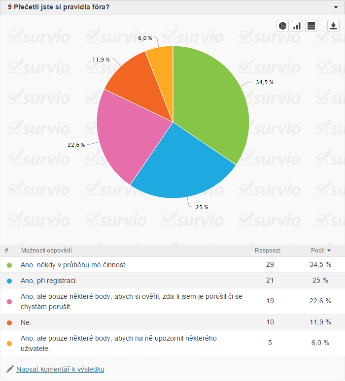 PS.: poslední odpověď byla zaznamenána v 15:05, uzavírající dotazník a určující finální počet odpovědí na úctyhodných 84.