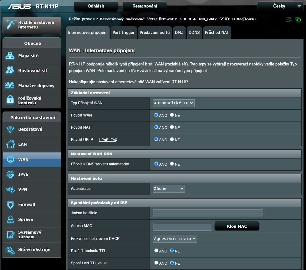 když se přihlásím do nastavení Asusu, tak je tam v záložce WAN jen toto viz. příloha, takže vše "Automaticky".