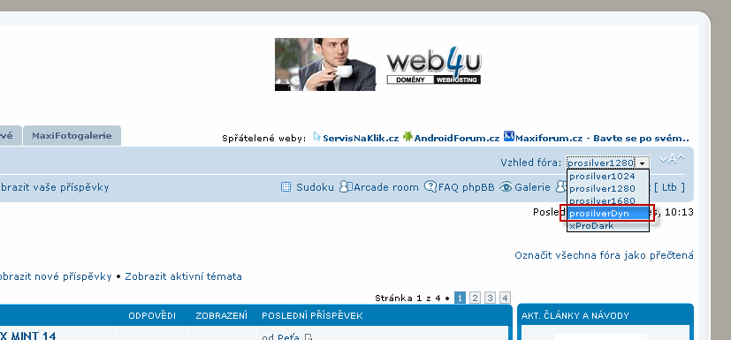 Hezký den všem, jak již bylo dříve avizováno tady a některým uživatelům už nějaký ten pátek slibováno, přidali jsme do fóra úšpěšně nový styl resp. novou modifikaci původního PROSILVER stylu. Pracovně jsem ho pojmenoval ProsilverDyn coby dynamický prosilver.