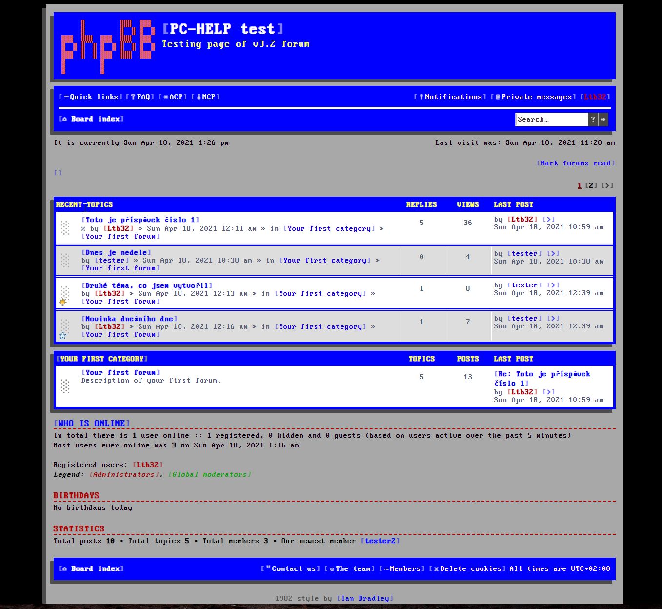 Díky moc za vaše pozitivní ohlasy, jsem rád, že vás retro styl zaujal podobně, jako mě :bigups: Snad věci půjdou dobře a nenarazím na nějaký zádrhel, kvůli kterému by styl nebylo možné nasadit. A jestliže se vám líbí 1982, bude se líbit i 1978 :-) viz. níže. Ten by mohl být ale až jako taková třešnička na dortu, jelikož je pouze pro phpbb 3.3, což by byl v pořadí až třetí update, který nás čeká. Nicméně by to byla bomba 8)