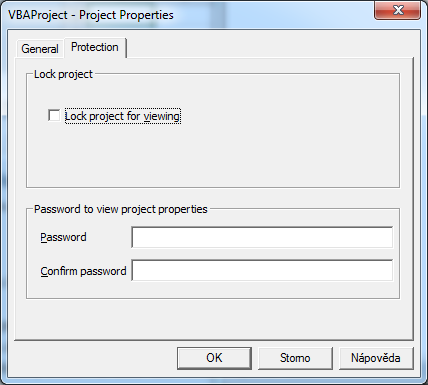 Tohle by bylo super a jednoduché řešení, ale nefunguje mi to. I když nastavím Lock a heslo, pak zamknu sešit, uložím, stejně se přes Developer dostanu na kód modulu a vidím zadané heslo.Grimm píše:Můžeš zaheslovat i VBEditor, pro zobrazení kódu bude požadováno heslo.