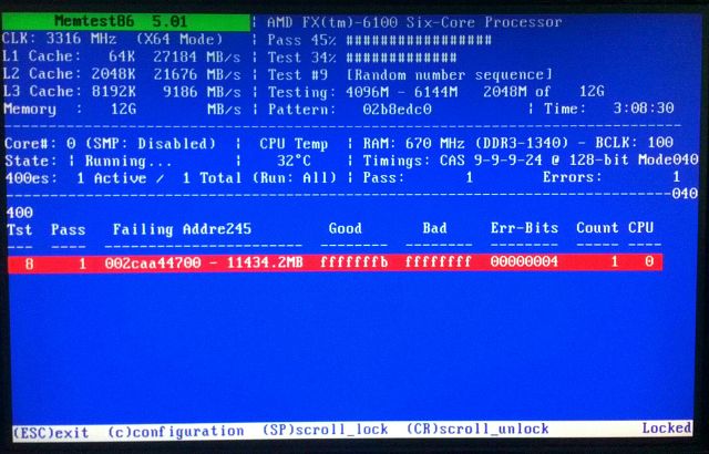 https://memtest.org/download/v6.10/mt86 ... taller.exe Vadná RAM (červeně jsou označeny vadné adresy RAM): HDTune (záložka Error Scan, nezatrhávat Quick Scan):