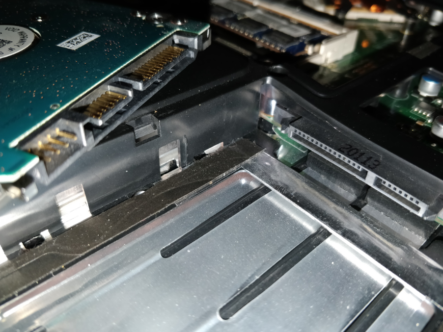 podle všeho je tam původní disk nasazenej přímo a navíc druhej volnej slot, kerej však vyžaduje redukci...