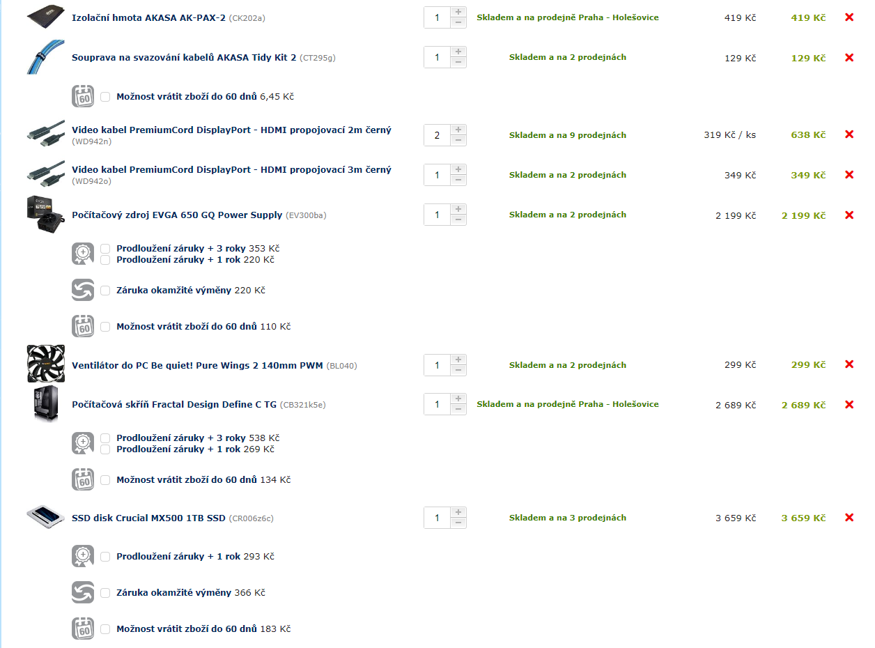 Přičemž bych si nechal tedy GK, chladič na CPU, disky a nějaké Noctua větráky.