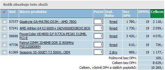 V košíku máte 5 položek za 10 269,- Kč. takhle bych to postavil kdyby si měl těch 10k jak říkáš no a když to koupíš ještě někde jinej třeba http://www.alfacomp.cz" onclick="window.open(this.href);return false; tak tě to vyjde levnějí a můžeš třeba koupit za to chladič na cpu, já bych ti to tam rovnou vybíral ale na czc je to pěkně roztříděný a už se tam pěkně vyznám
