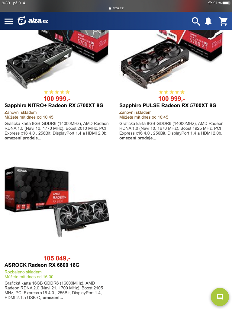 Třeba RX 6700 XT je zas za 20,5K Sapphire Pulse.