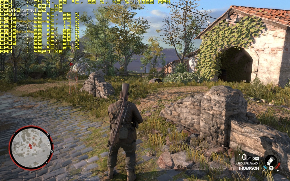 Sniper Elite 4, 25-35fps 1900x1200 rozlíšenie vysoké