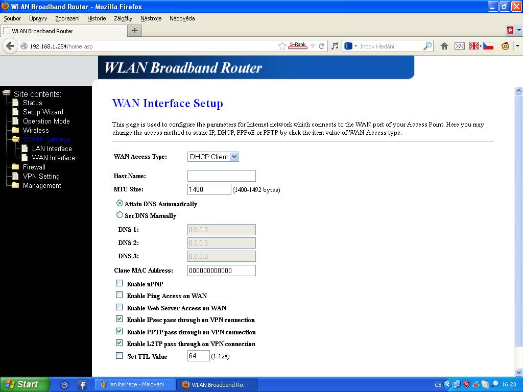 tu je nastaveni WAN