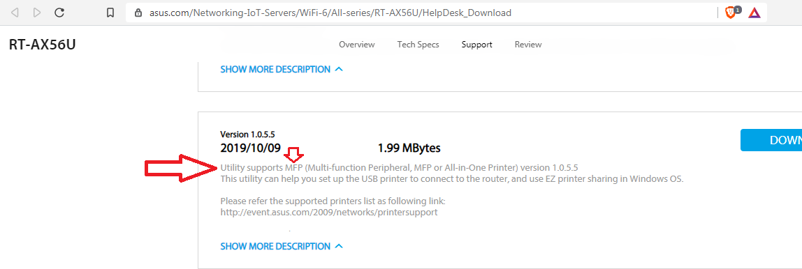 xx30: Pokud klikneš na odkaz EZ printer, nasměruje tě to na stránky podpory asusu. Tam vyplníš svůj router, klikneš na Podpora a Ovladače, vybereš systém a rozklikneš +Rozbalit vše. Najdeš MFP ovladač