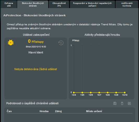 Router má vestavěný antivirový nástroj TrendMicro. Potenciální hrozby vyhodnocuje s TrendMicro databází.
