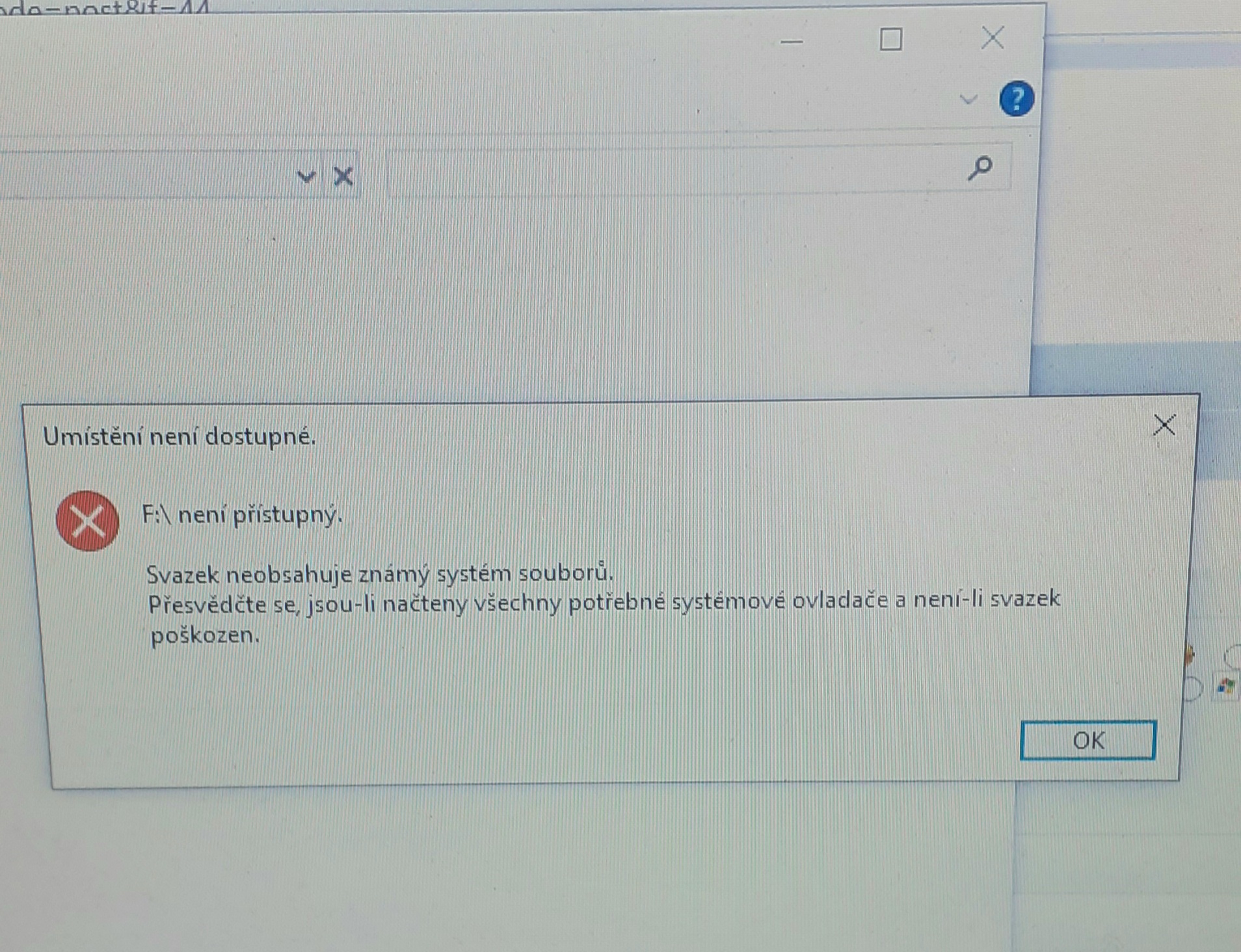 ve správě disků se zobrazuje normálně, jako disk:F , zkoušel jsem ho i přejmenovat na jiné písmeno, ale beze změny...