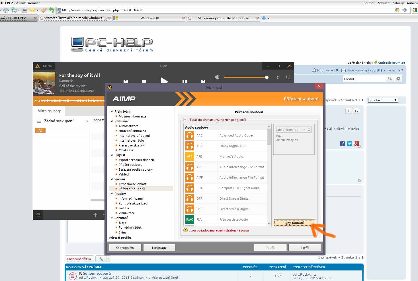 Nahrál jsem sousedovi program AIMP3 který odinstaloval a nechtěj se mu přidružit soubory zpět do media playeru když dáte otevřít v nebo v nastavení přípon, porádíte mi prosím co s tím?