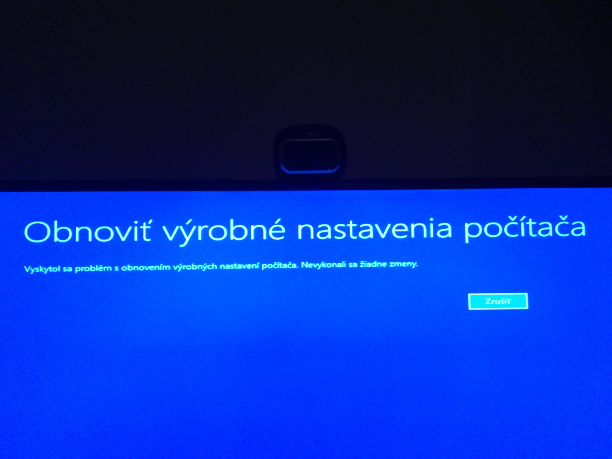 Chcel som si včera kompletne reinštalovať celý Windows, no keď idem do nastavení a kliknem na "Začať" v "Obnoviť výrobné nastavenia tohto PC" a následne odklikám, že chcem odstrániť všetko zo všetkých jednotiek a postupne sa obrazovka prepne na celú čiernu s Windows logom a nejakým nápisom že sa obnovujú výrobné nastavenia a za tým % tak asi po 5 minutách vyskočí toto okno čo dávam do prílohy a ja môžem ísť do svojeho starého Windowsu... Neviem čo s tým, ak niekto vie, poraďte pls.