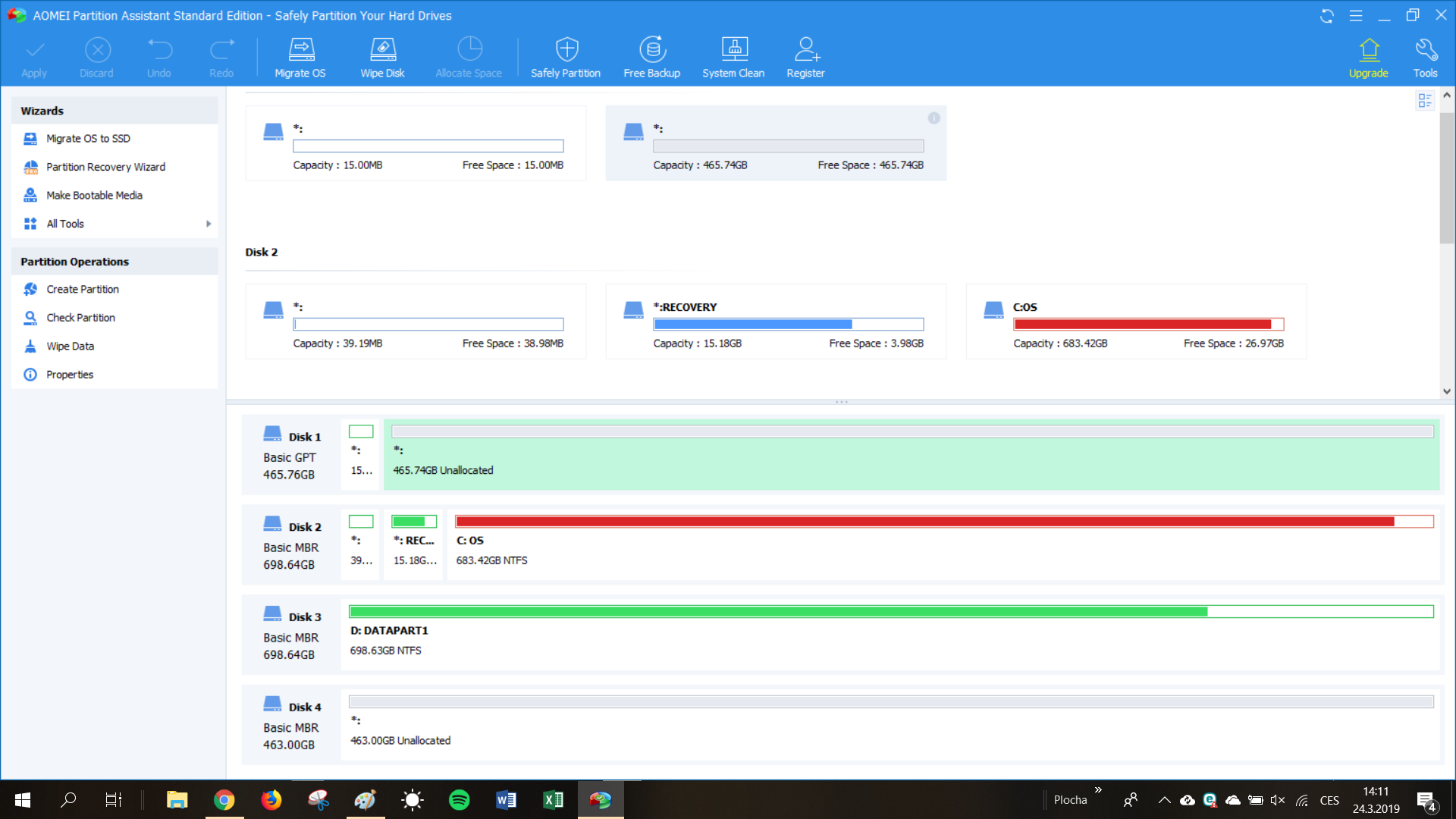 Zrejme nejaká chyba pri vytváraní oddielu disku.Preto v programe na začiatku 2 x ten istý disk ako Disk 1 a Disk 4.Ako som spomínal tých 15MB bola iba časť z disku GPT.