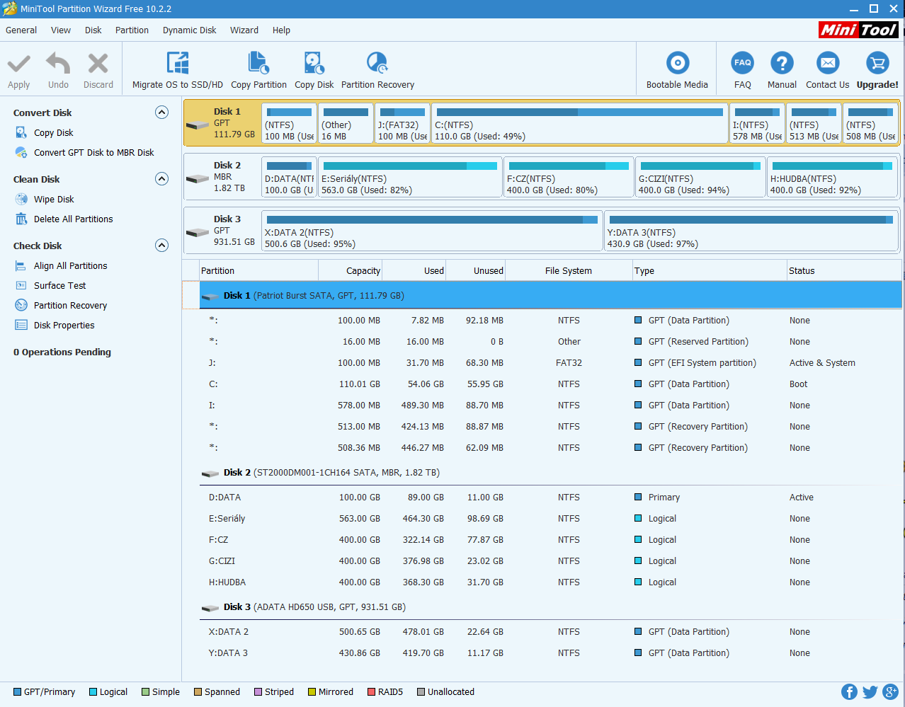 Ahoj lidi, všiml jsem si, že mám záhadně rozdělen systémový disk C (SSD). Přijde mi, že je tam moc oddílů (8) a dva jsou označeny písmenem "I" a "J". Což je ptákovina.