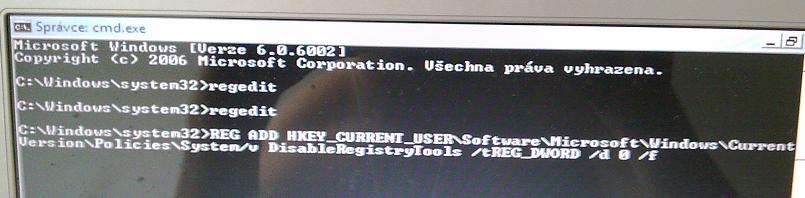 REG ADD HKEY_CURRENT_USER\Software\Microsoft\Windows\CurrentVersion\Policies\System/v DisableRegistryTools /t REG_DWORD /d 0 /f