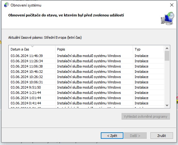 Proto doporučuji toto prověřit. Podívej se také do seznamu, zda ty body obnovy jsou skutečně vytvořené každých 20min.