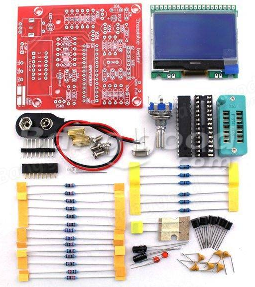 Tak jsem si udělal radost - koupil jsem stavebnici tranzistorového testeru. Kromě tranzistorů klasických to měří i odpory, cívky (do 2000 ohmů odporu), kondenzátory i jejich ESR, diody a FET tranzistory.