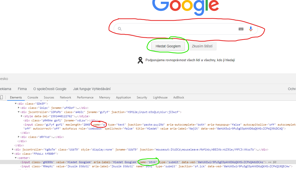 sub = driver.find_element_by_name("btnK") # potvrzeni dotazu,odenadano self