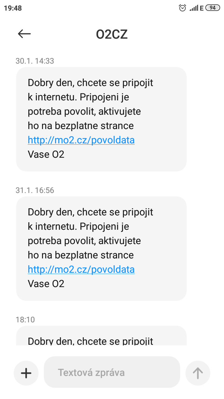 Zdravím, mám Xiaomi Redmi 4A, nemám data, jedu pouze wifi a každý den mi chodí zpráva viz. příloha. Operátor s tím nic nezmůže, prý to dělá v mobilu nějaká aplikace a já si nevím rady, jak to zrušit. Můžu vás poprosit o pomoc s řešením?