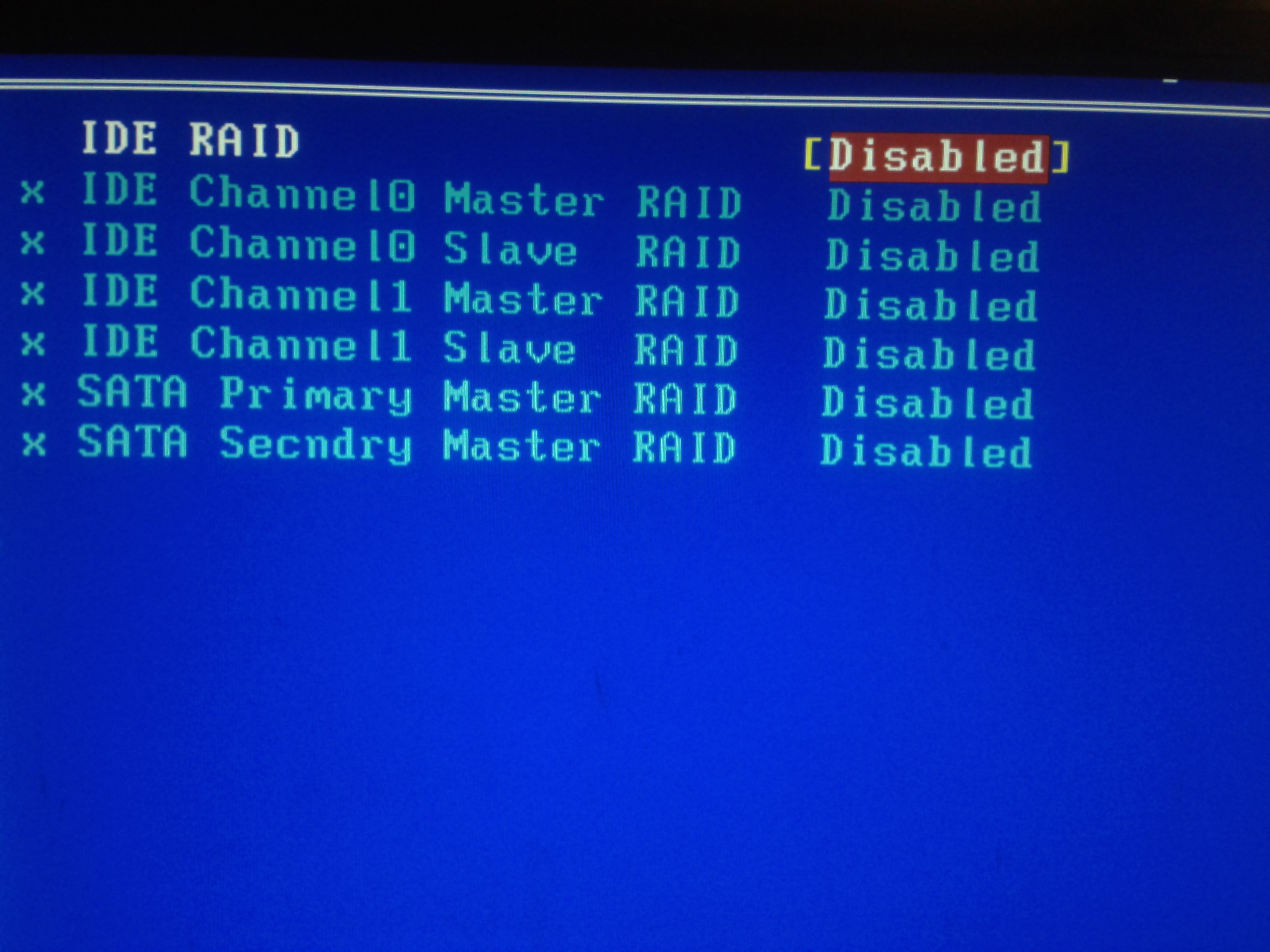 SATA Secndry Master RAID - Disabled